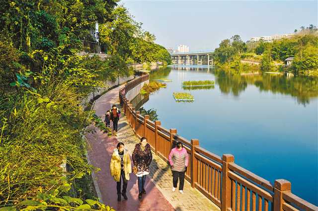 2018年1月9日,北碚區(qū)龍灘子水庫,市民在新建好的環(huán)湖步道上散步。(本報資料圖片)記者 萬難 攝