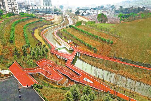 巴南區(qū)新華村社區(qū)公園,市民行走在步道上。(本報資料圖片)首席記者 謝智強 攝