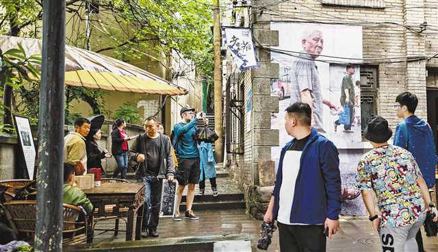 2018年10月2日,渝中區(qū)山城步道,2018重慶國際影像文化節(jié)系列活動之一的“山城步道戶外影像展”吸引了不少游客的目光。(本報資料圖片)記者 崔力 攝