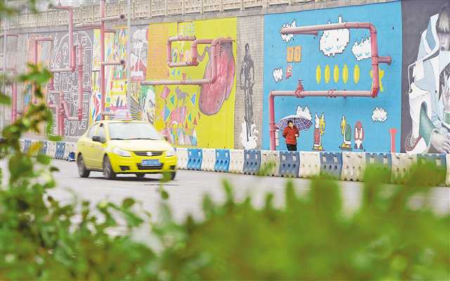 3月14日,在兩江新區(qū)匯豐路,涂鴉墻十分醒目。