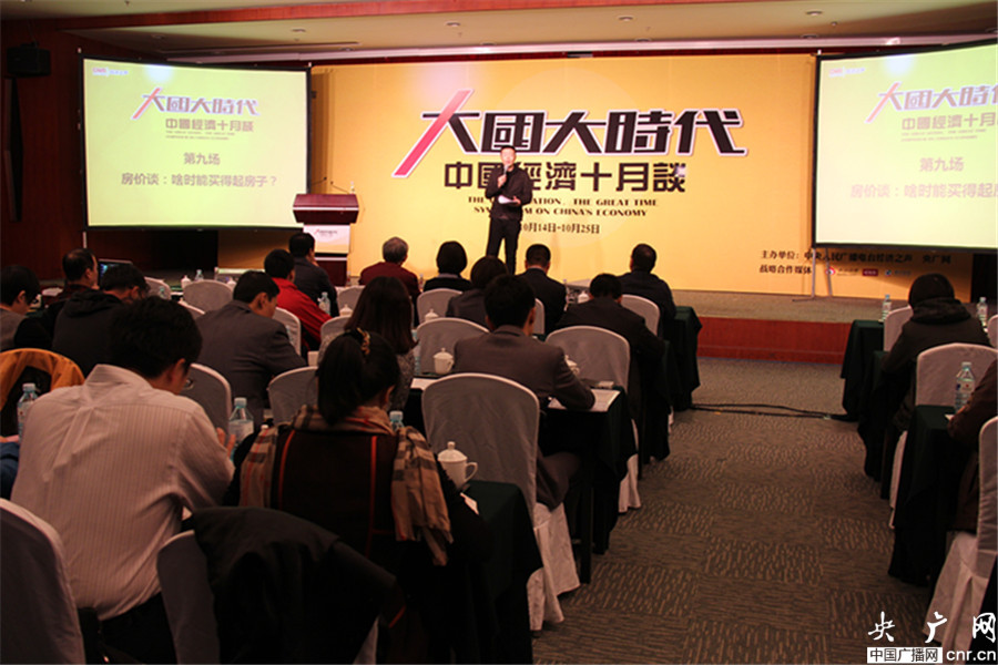 10月24日,由中央人民廣播電臺(tái)經(jīng)濟(jì)之聲、央廣網(wǎng)主辦的《大國(guó)大時(shí)代----中國(guó)經(jīng)濟(jì)十月談》系列時(shí)事報(bào)告會(huì)之九“房?jī)r(jià)談”,在廣電國(guó)際酒店舉行。今天的主題是《房?jī)r(jià)談:啥時(shí)能買得起房子?》。圖為報(bào)告會(huì)現(xiàn)場(chǎng)。(央廣網(wǎng) 于琦/攝)