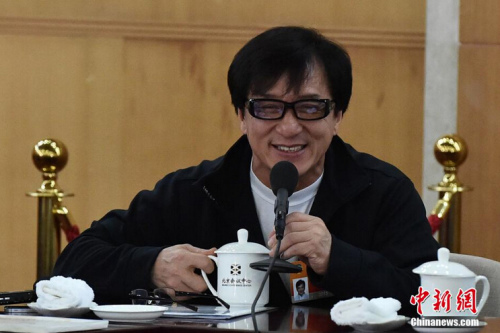 全國政協(xié)十二屆三次會議文藝界討論組對中外記者開放。成龍參加討論并現(xiàn)場發(fā)言。中新社發(fā) 翟羽佳 攝