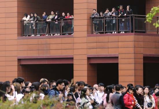《我們的少年時(shí)代》長(zhǎng)沙拍攝現(xiàn)場(chǎng)圍觀(guān)的同學(xué)們。