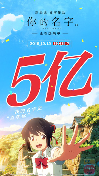 日本動(dòng)畫(huà)電影《你的名字!防塾(jì)票房已突破5億人民幣,影片12月2日上映后,連續(xù)9天問(wèn)鼎單日票房冠軍,即將趕超《哆啦A夢(mèng):伴我同行》創(chuàng)下的日漫電影在國(guó)內(nèi)上映的票房記錄。最新消息,《你的名字!藩(dú)家版權(quán)花落優(yōu)酷,將于近期上線,很快就可以隨心所欲,想幾刷就幾刷。