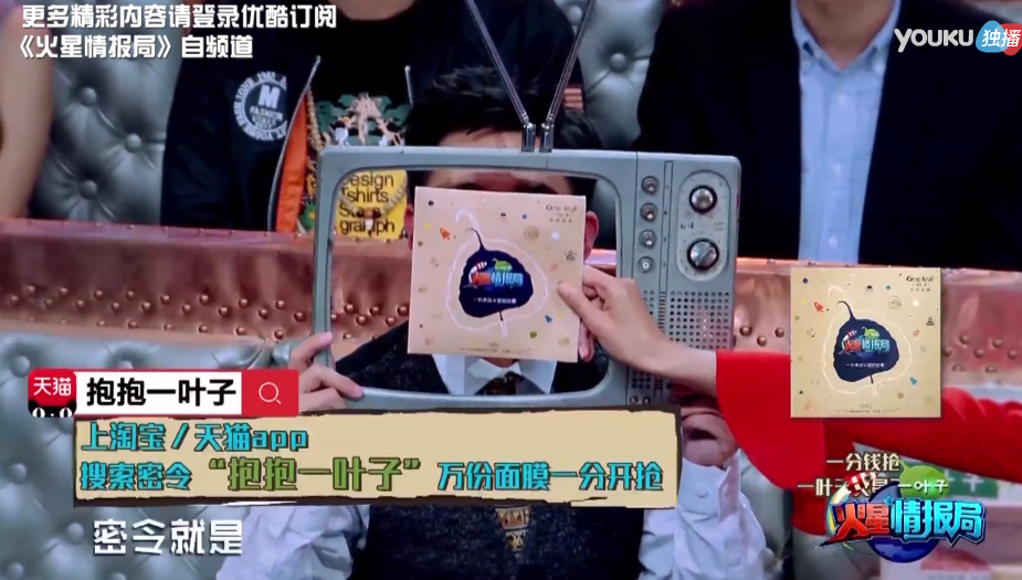 作為《火星情報局》的首席冠名,一葉子與節(jié)目內(nèi)容無縫連接,從硬廣口播到將廣告融入到節(jié)目中。一葉子面膜借助《火星情報局》的活力、趣味和個性優(yōu)勢,在消費者中快速傳遞其年輕、新鮮的產(chǎn)品理念。其在觀眾面前以各種姿勢刷足了存在感,好玩又多彩的廣告植入新技能讓觀眾們過目不忘。