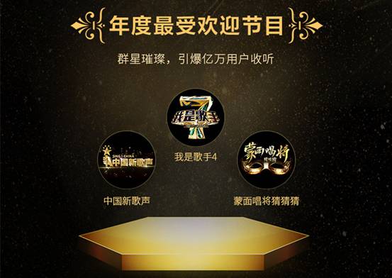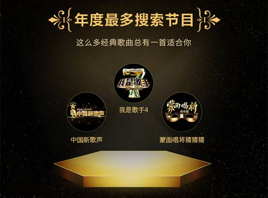 【年度最受歡迎/最多搜索節(jié)目:《我是歌手4》、《中國新歌聲》、《蒙面唱將猜猜猜》】