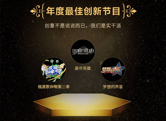 【年度最佳創(chuàng)新節(jié)目:《蓋世英雄》、《偶滴歌神啊》第三季、《夢想的聲音》】