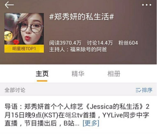 2月15日,讓無數(shù)宅男大呼“老婆”的韓國女神級偶像鄭秀妍(Jessica)把自己的直播首秀放在了YY LIVE!當(dāng)天,#鄭秀妍的私生活#這一話題,迅速被粉絲自發(fā)推上微博明星熱門話題第一位,并占領(lǐng)熱搜接近4小時(shí)。