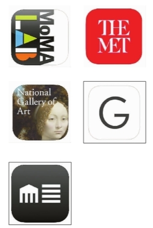 國外美術(shù)館的移動(dòng)客戶端標(biāo)識(shí),依次為:紐約現(xiàn)代藝術(shù)博物館、紐約大都會(huì)藝術(shù)博物館、華盛頓國家畫廊、紐約古根海姆博物館、克利夫蘭藝術(shù)博物館。資料圖片