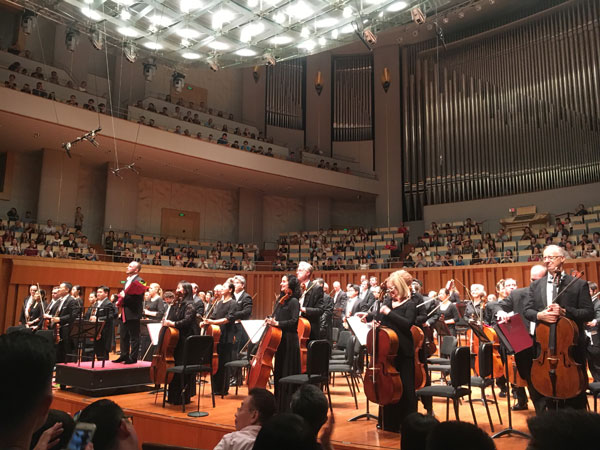 5月31日,為了慶祝國(guó)家大劇院開(kāi)幕十周年,費(fèi)城交響樂(lè)團(tuán)與國(guó)家大劇院合唱團(tuán)及演奏家們共同演奏貝多芬《第九交響曲》。