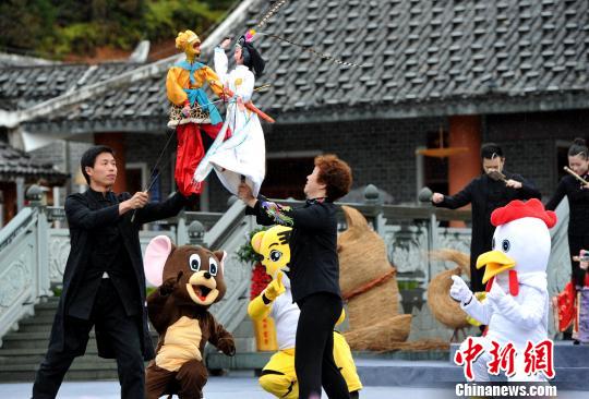 圖為來自連城縣和上杭縣代表隊聯(lián)合表演的客家木偶表演《佳“偶”天成》。 張斌 攝