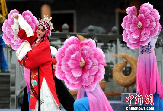 圖為鄉(xiāng)村春晚上福建的地方戲曲劇種之一的閩西漢劇演唱《南國牡丹》。 張斌 攝
