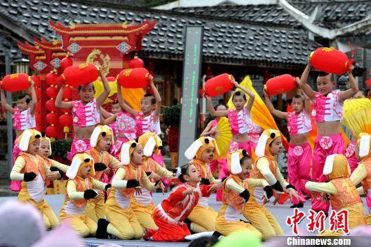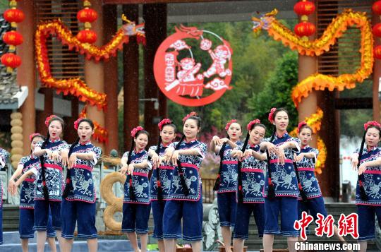 圖為鄉(xiāng)村春晚上表演的舞蹈《福娃迎春》!埍 攝