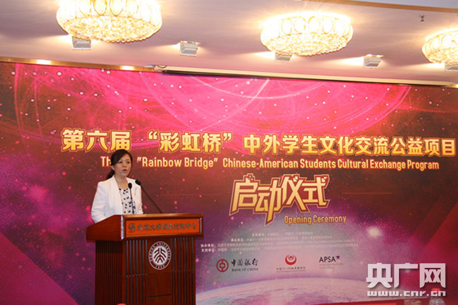 2017年7月25日上午,第六屆“彩虹橋”中外學(xué)生文化交流公益項目在北京大學(xué)英杰交流中心舉辦。來自中國銀行、中國下一代教育基金會、北京大學(xué)國際關(guān)系學(xué)院、北京市歸國華僑聯(lián)合會、美國人留學(xué)促進會的相關(guān)領(lǐng)導(dǎo)出席啟動儀式。本屆“彩虹橋”項目將資助30名品學(xué)兼優(yōu)的中國貧困大學(xué)生和20名熱愛中國文化的美國貧困大學(xué)生在中美兩國參加豐富多彩的文化學(xué)習(xí)和交流活動,是中國銀行創(chuàng)新教育扶貧的重要舉措。 “彩虹橋”中外學(xué)生文化交流公益項目是由中國銀行、中國下一代教育基金會和美國人留學(xué)促進會于2012年共同發(fā)起的一項公益項目,旨在為中外家境貧寒、品學(xué)兼優(yōu)的青年學(xué)生提供赴異國學(xué)習(xí)交流、改變?nèi)松鷳B(tài)度、開拓國際視野的人生機會,構(gòu)建中國與世界青年文化交流和溝通的橋梁。目前,“彩虹橋”中外學(xué)生文化交流公益項目已經(jīng)連續(xù)舉辦5年,共資助241名中美雙方家境貧寒、品學(xué)兼優(yōu)的學(xué)生。 -
