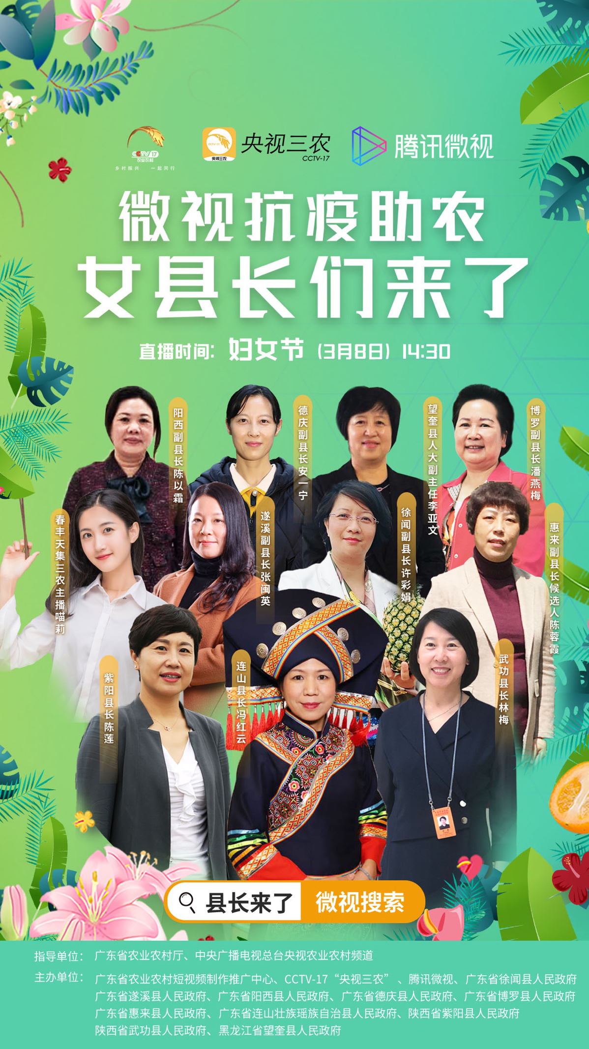 據(jù)了解,這場十位女縣長直播帶貨活動主題為“微視抗疫助農(nóng),女縣長們來了”,由廣東省農(nóng)業(yè)農(nóng)村廳與中央廣播電視總臺央視農(nóng)業(yè)農(nóng)村頻道指導(dǎo),騰訊微視聯(lián)合CCTV-17“央視三農(nóng)”、央視頻共同發(fā)起。除了騰訊微視外,“央視三農(nóng)”在央視頻、微博的官方賬號也會同步進(jìn)行直播。