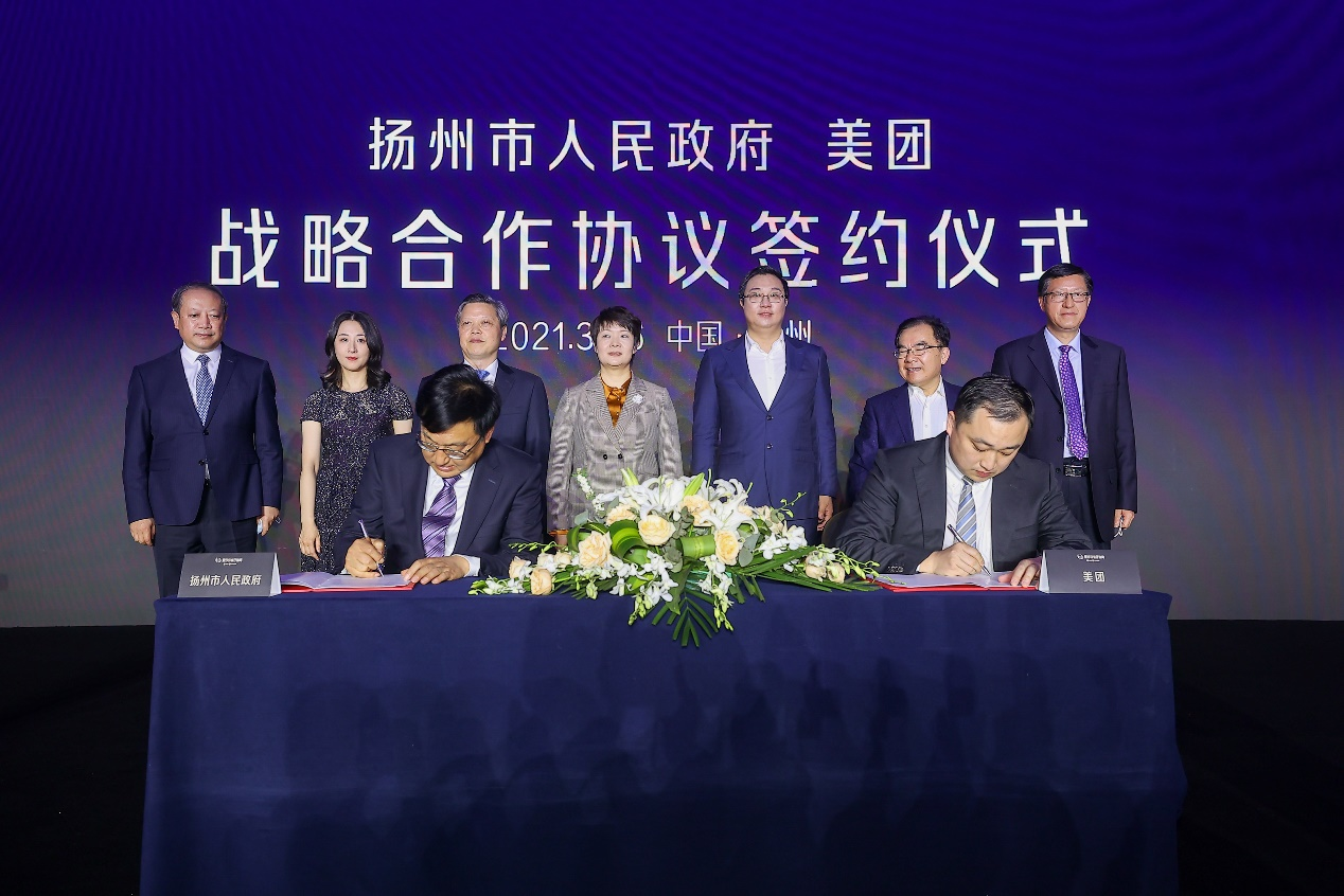 現(xiàn)場,揚(yáng)州市人民政府與美團(tuán)簽署了戰(zhàn)略合作協(xié)議,宣布雙方通過打造新型智能城市,共襄揚(yáng)州“好地方”建設(shè),提升“世界美食之都”全球影響力。揚(yáng)州市市長張寶娟出席活動(dòng),揚(yáng)州市市委副書記、統(tǒng)戰(zhàn)部部長孔令俊現(xiàn)場致辭,副市長丁一、方桂林,市政府秘書長尤在晶參加活動(dòng)。
