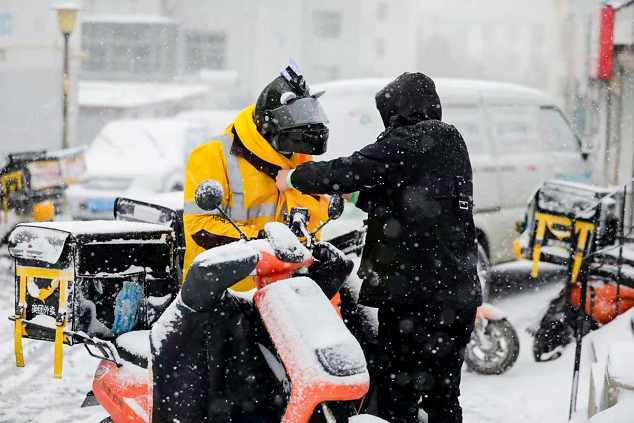 近期全國各地氣溫驟降,雨雪天氣增多。除了提前向騎手發(fā)送安全配送提示外,將根據(jù)天氣和訂單情況,對部分地區(qū)適當延長配送時長、調(diào)整配送范圍。對于部分因惡劣天氣導致的配送超時將直接免責,無需騎手另行申訴。