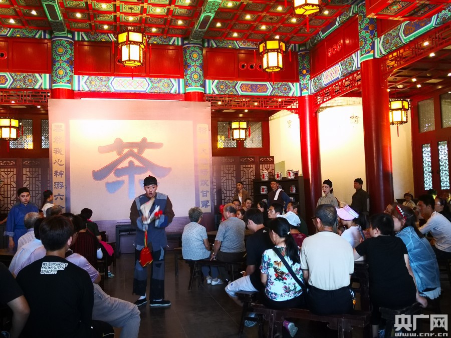 2019中國戲曲文化周期間,由北京市曲劇團帶來的浸入式曲劇《茶館》,在北京園博園上演。