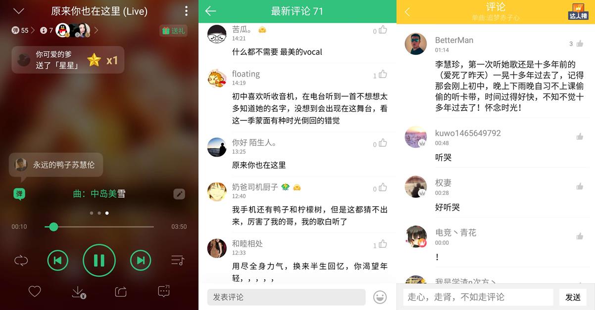 此外,代表一段華語經(jīng)典時代、好久不見的李慧珍和蘇慧倫的成功揭面也被網(wǎng)友稱“有時光倒回的錯覺”。重新拿起話筒,李慧珍用一首《追夢赤子心》訴說了淡出歌壇的這些年是如何因為音樂而執(zhí)著重生,歌聲中飽滿的能量與感動,也觸動到了大家內(nèi)心的柔軟,更有酷我音樂網(wǎng)友追憶起第一次聽李慧珍歌曲的情景,感嘆時光流逝,關(guān)于李慧珍的相關(guān)歌單也來到了QQ音樂的專題推薦。