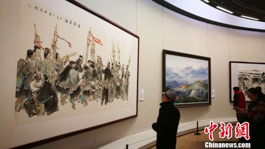 中新網(wǎng)北京12月31日電 (記者 應(yīng)妮)“翰墨書盛世 丹青頌華章”多彩貴州大型書畫作品展正在中國美術(shù)館展出,該展集中展出聚焦貴州歷史畫面的117件美術(shù)和書法作品。