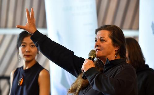 10月29日,在北京國(guó)家大劇院舉行的舞蹈課堂活動(dòng)上,美國(guó)瑪莎·葛蘭姆現(xiàn)代舞團(tuán)的巡演經(jīng)理費(fèi)伊·羅森巴姆介紹瑪莎·葛蘭姆舞蹈技法。 10月30日至31日,美國(guó)瑪莎·葛蘭姆現(xiàn)代舞團(tuán)將攜舞蹈合輯《寂靜悲喜》亮相國(guó)家大劇院,為觀眾展現(xiàn)現(xiàn)代舞藝術(shù)的迷人魅力。