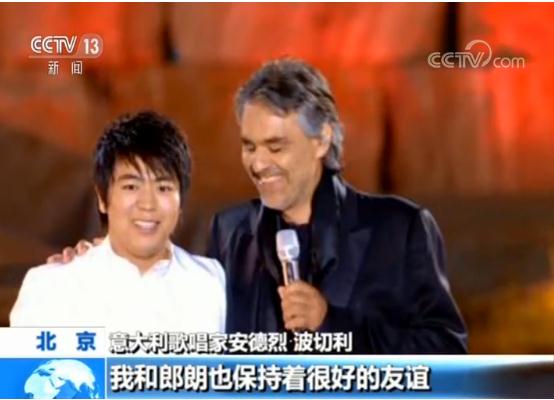 意大利歌唱家安德烈·波切利:中國音樂在世界音樂上占有很重要的地位,中國人對音樂有一種深入骨髓的熱愛,中國音樂在世界音樂舞臺中是很特別的存在,中國有很多優(yōu)秀的音樂家,比如郎朗,我和郎朗也保持著很好的友誼。