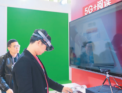 觀眾在數(shù)字閱讀發(fā)展與技術(shù)博覽會上體驗5G+閱讀!⌒氯A社記者 黃宗治攝