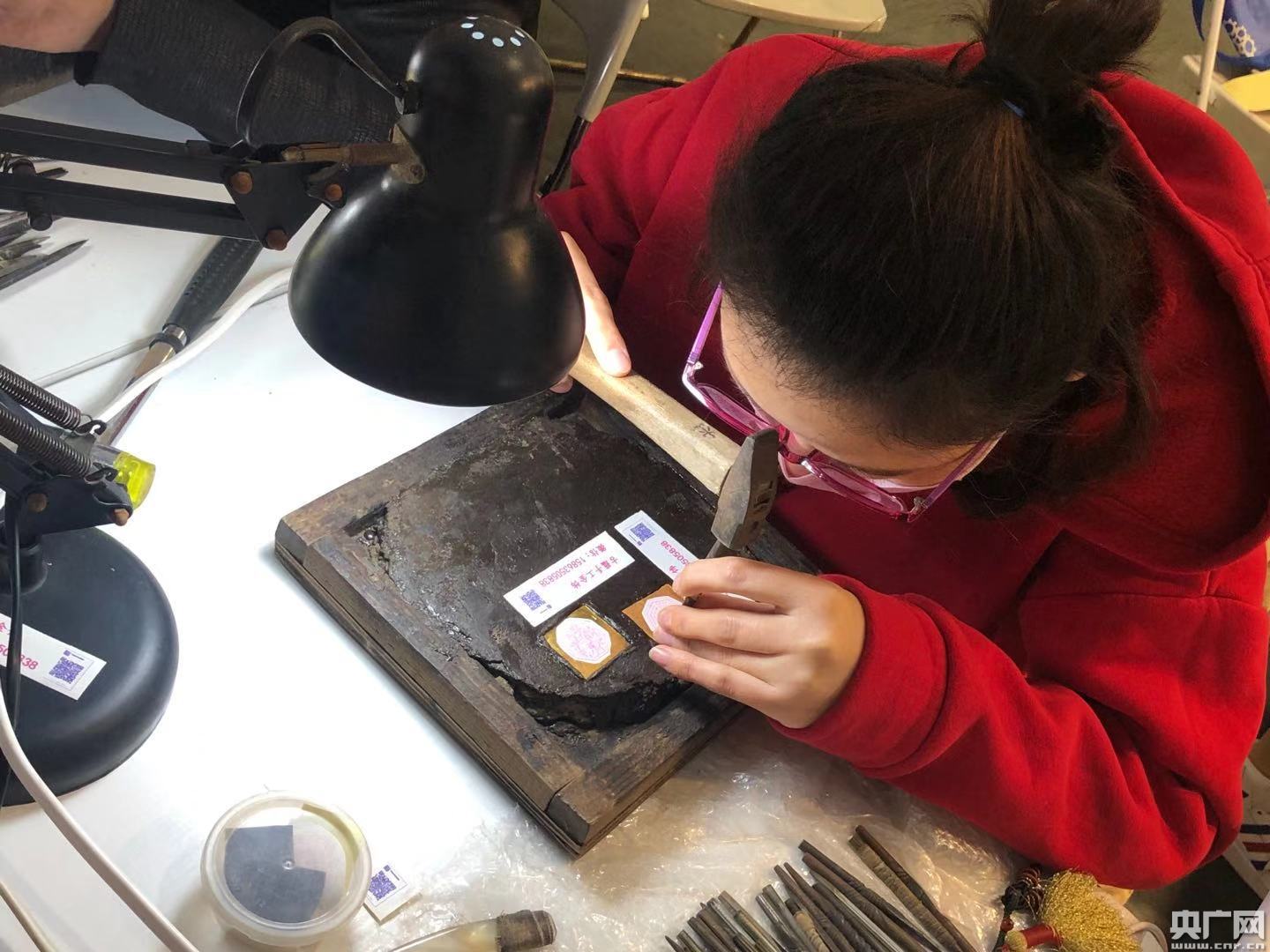 圖為手工藝人現(xiàn)場創(chuàng)作。(央廣網(wǎng)記者 方永磊 攝)