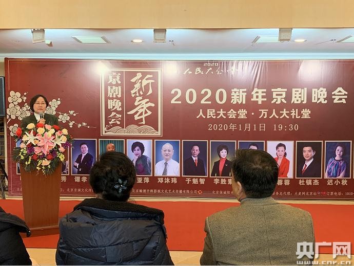圖為北京演藝集團黨委副書記、董事、總經(jīng)理王玨介紹2020新年京劇晚會策劃演出情況。(央廣網(wǎng)發(fā) 北京演藝集團供圖)