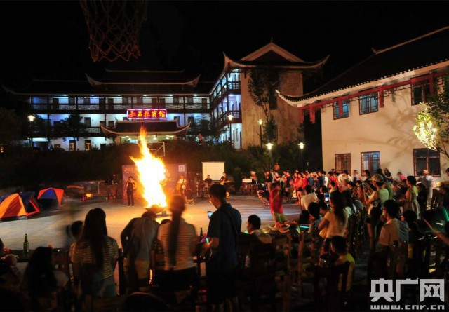 瀑布亮燈晚會(huì):紅紅火火,篝火旺年