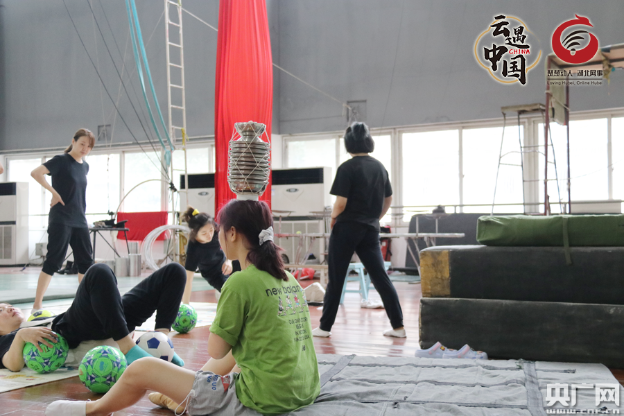 在武漢雜技團(tuán)訓(xùn)練室,演員們正在訓(xùn)練。(央廣網(wǎng)實(shí)習(xí)記者 王可佳 攝)