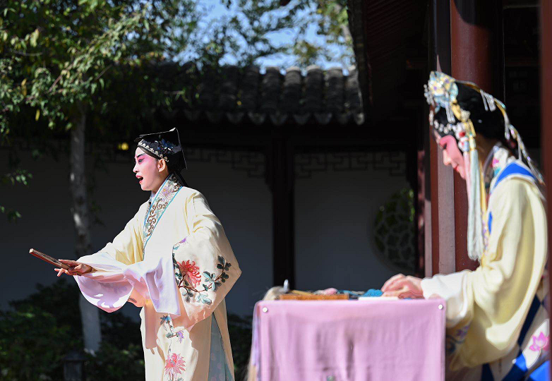 。“憶江南”園中,北方昆曲劇院正在進行演出彩排。豐臺區(qū)委宣傳部供圖,央廣網(wǎng)。)