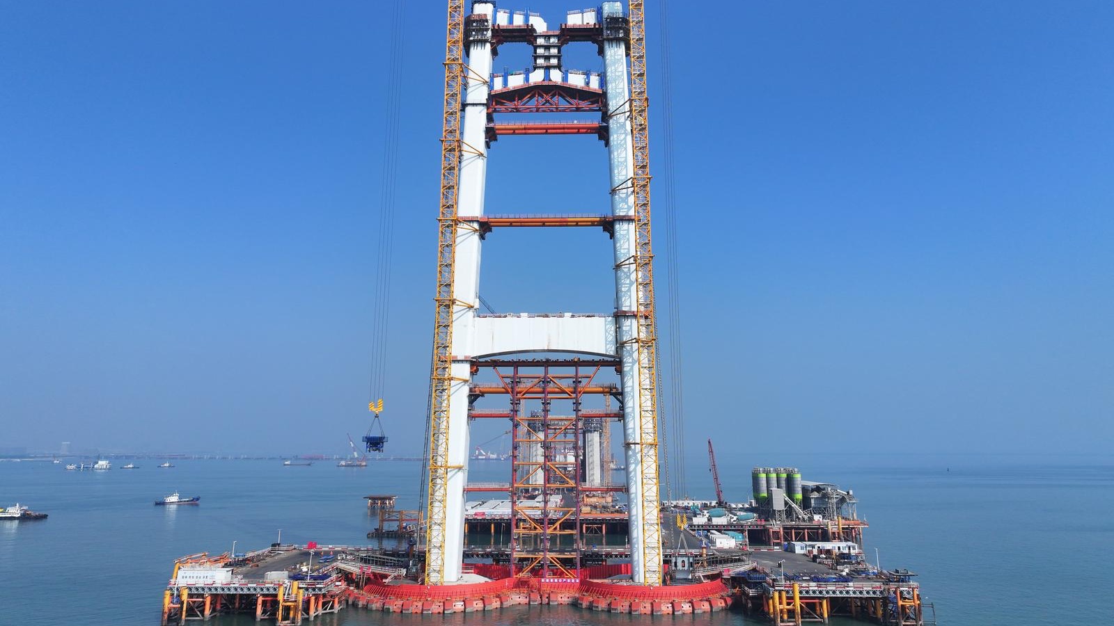 11日,廈金大橋劉五店航道橋東主塔橫梁順利合龍,標(biāo)志著劉五店航道橋主塔工程全部完成。