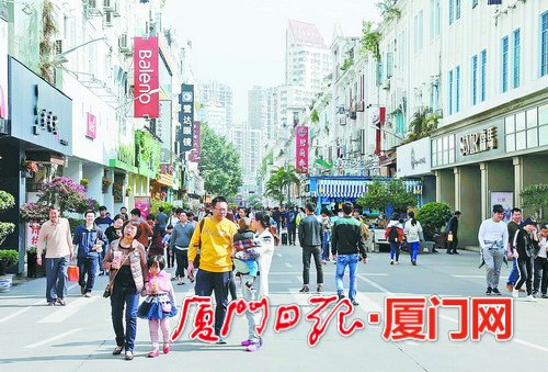 昨日,廈門陽光燦爛,氣候溫和,地震發(fā)生時,中山路上行人如常。(記者姚凡攝)