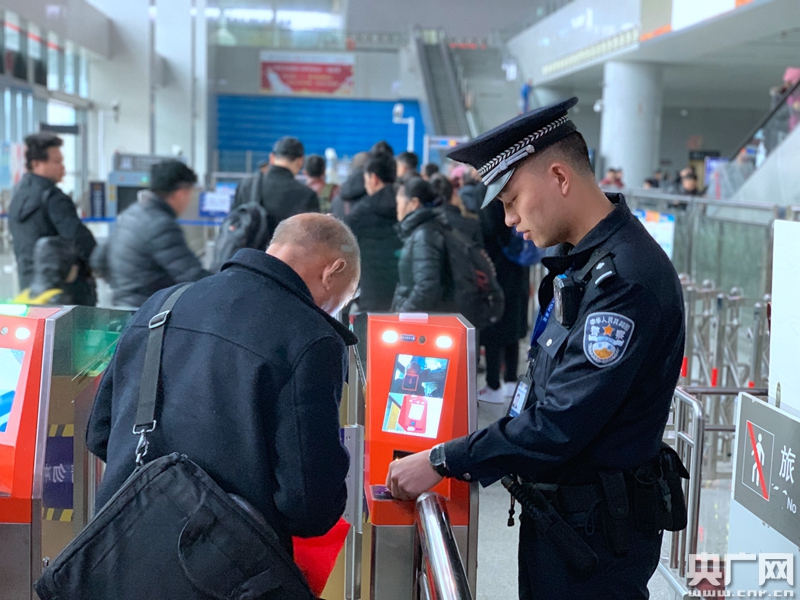 民警引導(dǎo)旅客進站乘車(央廣網(wǎng)發(fā) 通訊員供圖)