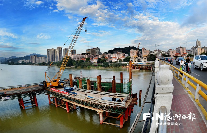 新洪塘大橋拓寬改建,計劃分為北側(cè)、中間、南側(cè)三部分施工,將先建設(shè)新洪塘大橋的北側(cè)和南側(cè)各1/3幅,在此過程中,中間老洪塘大橋依然保持通行。待北側(cè)橋和南側(cè)橋完工并臨時通車后,再拆除老洪塘大橋并建設(shè)中間1/3幅,最終實現(xiàn)新洪塘大橋雙向8車道通行。(福州日報記者 謝星星/文 葉義斌/攝)