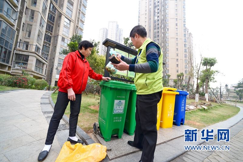 3月29日,廈門市垃圾分類示范小區(qū)天湖城小區(qū)內,垃圾分類督導員蘇永順(右)將邱彩仙阿姨送來的廚余分類垃圾掃碼記錄后投入分類垃圾箱。 新華社記者姜克紅攝 當日,廈門市垃圾分類示范小區(qū)海滄天湖城小區(qū)內,79歲的邱彩仙阿姨將一袋廚余垃圾投放至小區(qū)廚余垃圾分類箱,隨后這袋垃圾被廚余垃圾專用車轉運至廈門市垃圾分類處理廠。在這里經過流水線分揀后,其中剩菜剩飯等有機物被輸送至厭氧發(fā)酵間發(fā)酵產生甲烷氣體燃燒發(fā)電,而塑料、紙張等可燃垃圾被再次轉運至附近的廈門后坑垃圾焚燒發(fā)電廠進行焚燒發(fā)電。至此,邱阿姨這袋廚余分類垃圾完成了“變身之旅”,被轉化為可利用的電能。 據了解,廈門目前日產各類垃圾5000余噸,其中約1800余噸被用來焚燒發(fā)電,2600余噸被壓縮填埋,剩下的約600余噸廚余分類垃圾被進行生物質能轉換再生利用。 近年來,廈門市穩(wěn)步推進垃圾分類工作,正加快建立分類投放、分類收集、分類運輸、分類處理的生活垃圾分類處理系統(tǒng),并通過設立的19個垃圾分類示范小區(qū)和學校垃圾分類教育,宣傳垃圾分類的重要性,提高全民參與熱情。 -