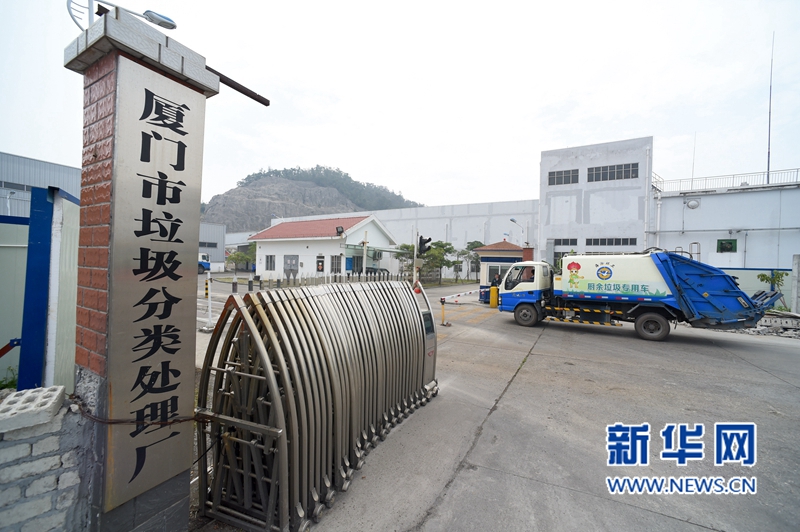 3月29日,一輛廚余垃圾專用車駛進廈門市垃圾分類處理廠。 新華社記者姜克紅攝 -