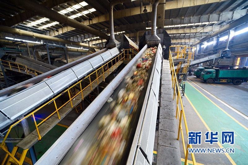 3月29日,廈門市垃圾分類處理廠內運行中的垃圾分揀流水線。 新華社記者姜克紅攝 -