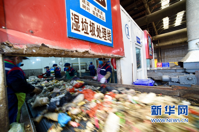 3月29日,廈門市垃圾分類處理廠的工人在對廚余垃圾進行初步分揀。 新華社記者姜克紅攝 -