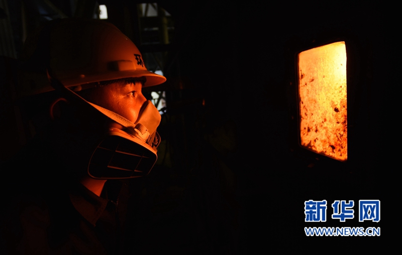 3月29日,廈門市后坑垃圾焚燒發(fā)電廠值班長張祥潤在觀察垃圾焚燒爐內情況。 新華社記者姜克紅攝 -