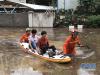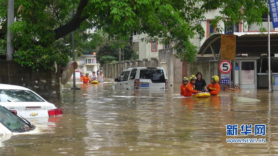 5月7日,在積水嚴(yán)重的廈門市思明區(qū)東坪山路,消防官兵轉(zhuǎn)移被困人員。新華社發(fā) -