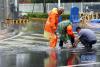 5月7日,環(huán)衛(wèi)工人在廈門市思明區(qū)會(huì)展北路積水路段清理下水道。新華社發(fā)(曾德猛 攝) -