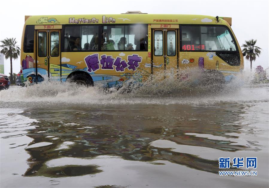 5月7日,車輛行駛在廈門市一積水路段。新華社發(fā)(曾德猛 攝) -