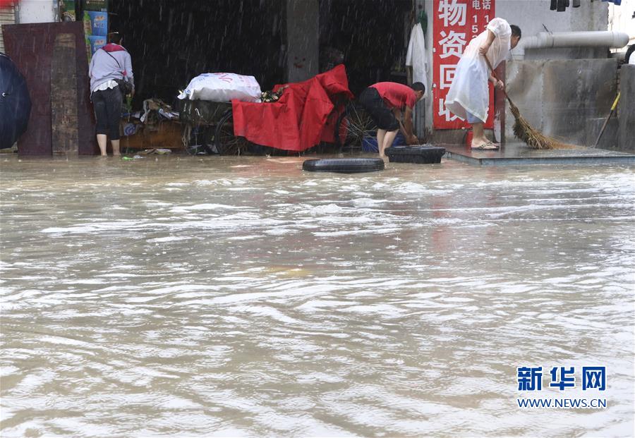 5月7日,在廈門市思明區(qū),人們排除家中積水。新華社發(fā)(曾德猛 攝) -