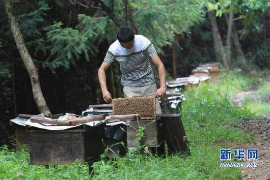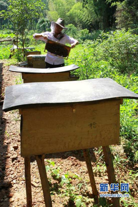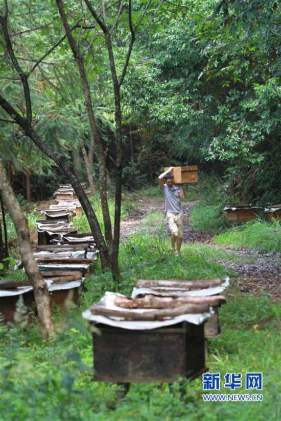 7月22日,陳村蜂農(nóng)在養(yǎng)蜂場進行日常管理。新華社發(fā)(陳柏材 攝)