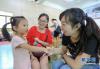 開園第一天的晨檢,讓小朋友有些意外。但這更像一個儀式,其意義在于幫助孩子們養(yǎng)成健康、衛(wèi)生的生活習(xí)慣。新華網(wǎng) 肖和勇 攝 -