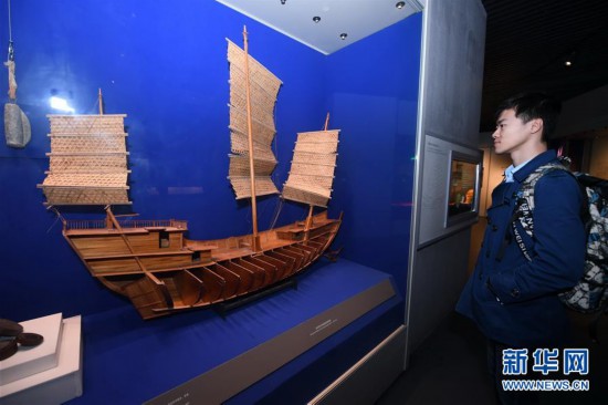 3月1日,參觀者在泉州海外交通史博物館觀賞展出的泉州灣宋代海船剖面模型。泉州自古就是海上絲綢之路的重鎮(zhèn),擁有眾多珍貴的相關(guān)文物古跡。泉州海外交通史博物館(海交館)展出的反映古代海外交通、海上絲綢之路及由此引發(fā)的經(jīng)濟(jì)、文化交流的海外交通史文物,生動再現(xiàn)了中國古代悠久輝煌的海洋文化。新華社記者 林善傳 攝