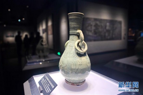 這是泉州海外交通史博物館展出的元代東門窯青釉劃花紋夔龍銜環(huán)雙耳瓶(3月1日攝)。泉州自古就是海上絲綢之路的重鎮(zhèn),擁有眾多珍貴的相關(guān)文物古跡。泉州海外交通史博物館(海交館)展出的反映古代海外交通、海上絲綢之路及由此引發(fā)的經(jīng)濟(jì)、文化交流的海外交通史文物,生動再現(xiàn)了中國古代悠久輝煌的海洋文化。新華社記者 林善傳 攝