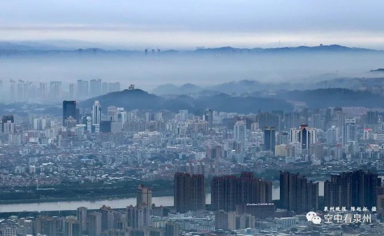 往開元寺東西塔方向望去,遠(yuǎn)處城東片區(qū)的高樓群在霧中若隱若現(xiàn)。此情此景,有沒有感受到“多少樓臺煙雨中”的意境?